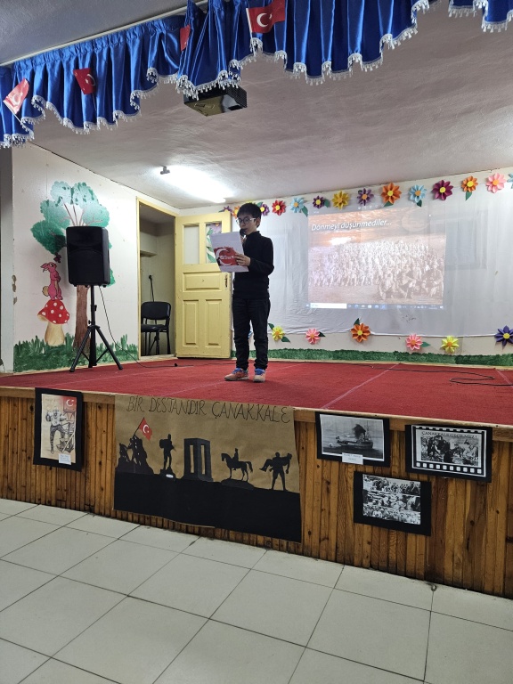Nedenleri ve sonuçları ile dünya tarihine adını altın harflerle yazdırmış en önemli muharebelerden biri olan Çanakkale Savaşı'nın 110. yılı münasebetiyle okulumuzda anma program yapıldı. Bir milletin bağımsızlık aşkının, vatan sevgisinin ve fedakârlığın destanı olan Çanakkale Zaferi'nin önemi vurgulandı. Vatan uğruna canlarını feda eden aziz şehitlerimizi rahmet ve minnetle anıyoruz. Ruhları şad olsun!